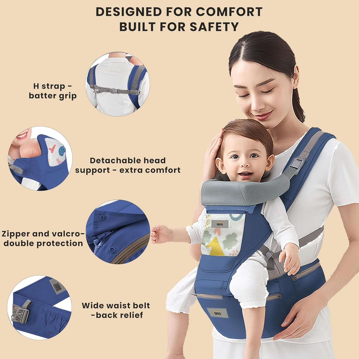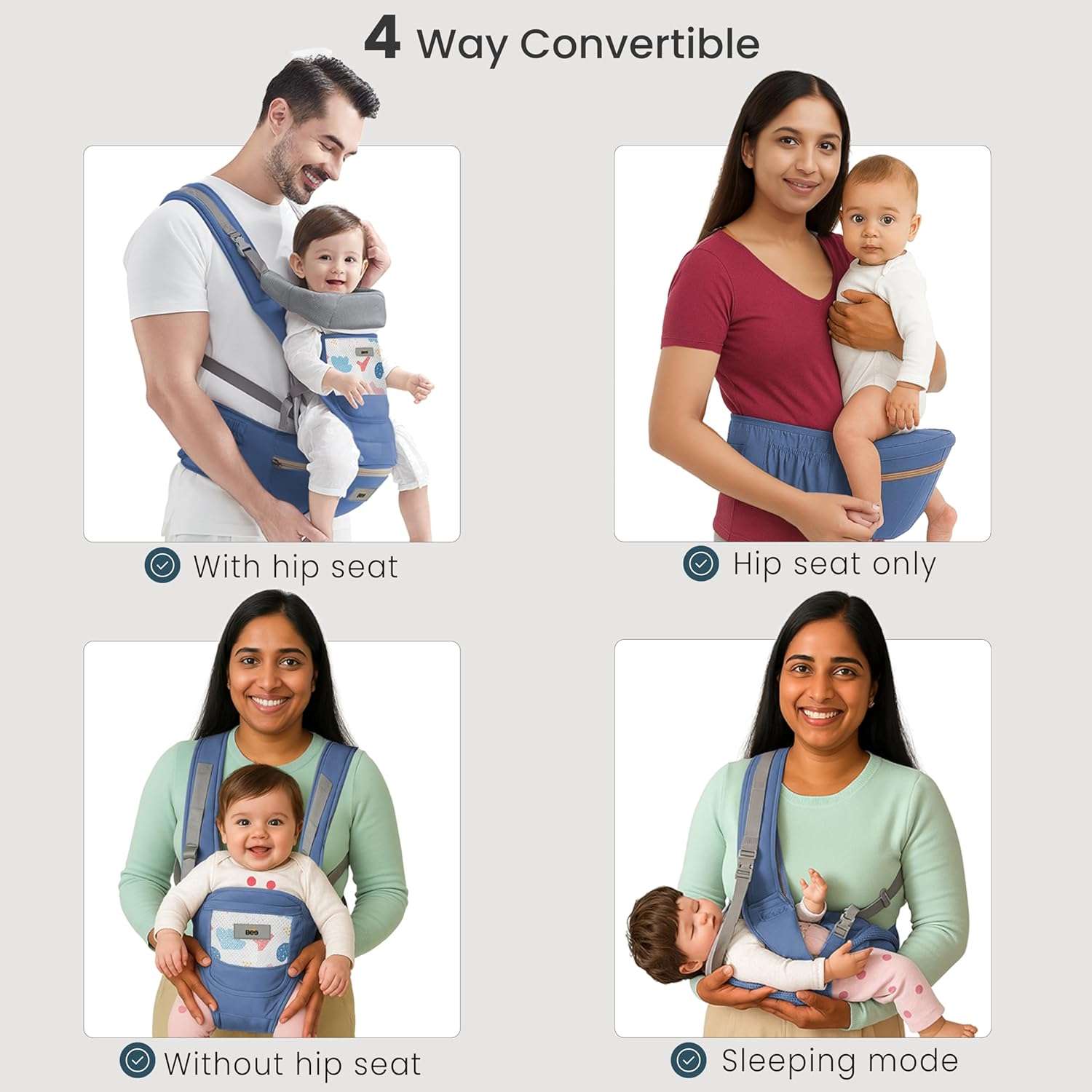 Golden Bee Baby Carrier - Comfort Nest Hip Seat Baby Carrier, Baby Carrier Belt, Multi-Carry Positions, 100% Cotton Fabric with Breathable Mesh, Newborn to Toddler, 4 to 36 Months, Up to 15 kg (Blue) Golden Bee Baby Carrier - Comfort Nest Hip Seat Baby Carrier, Baby Carrier Belt, Multi-Carry Positions, 100% Cotton Fabric with Breathable Mesh, Newborn to Toddler, 4 to 36 Months, Up to 15 kg (Blue)