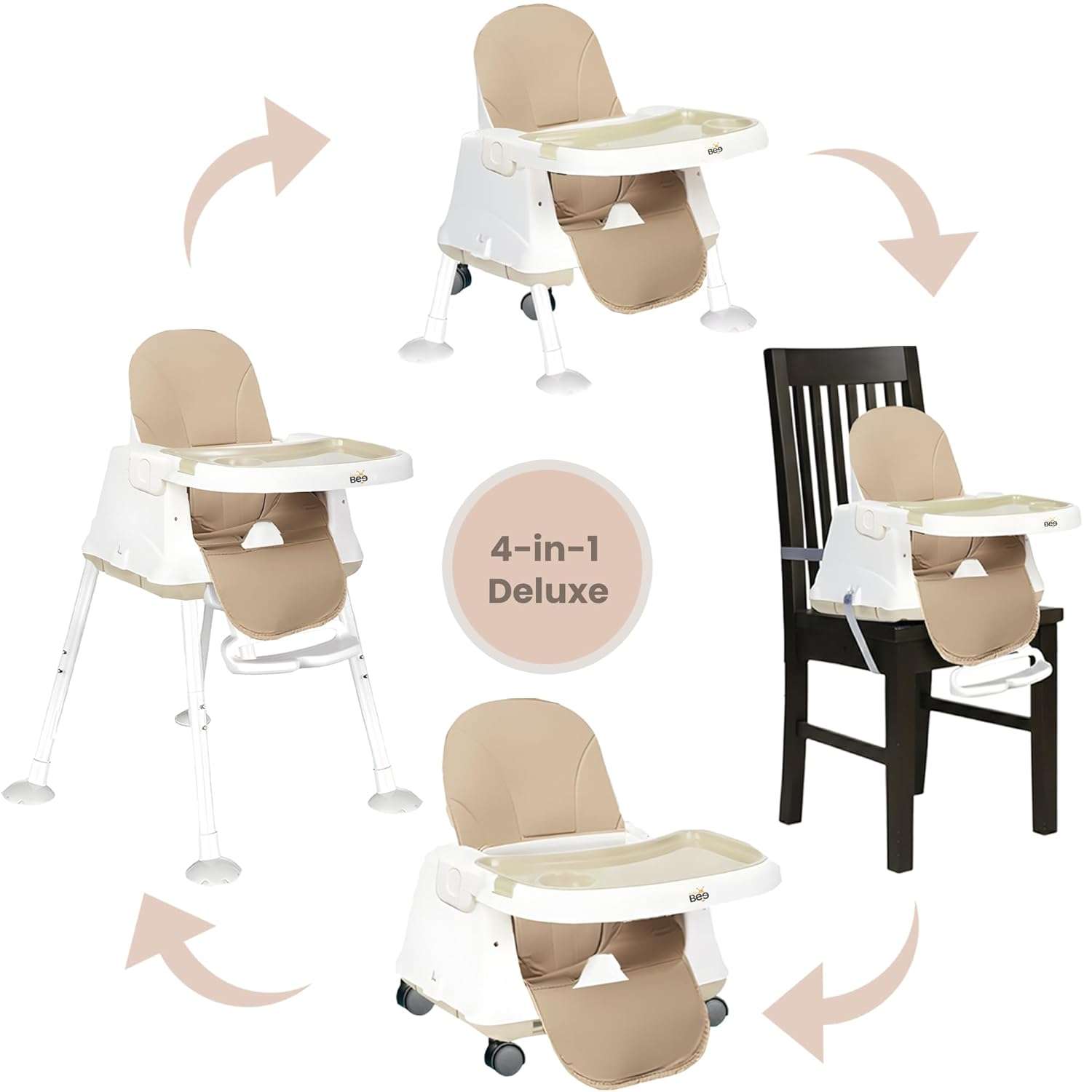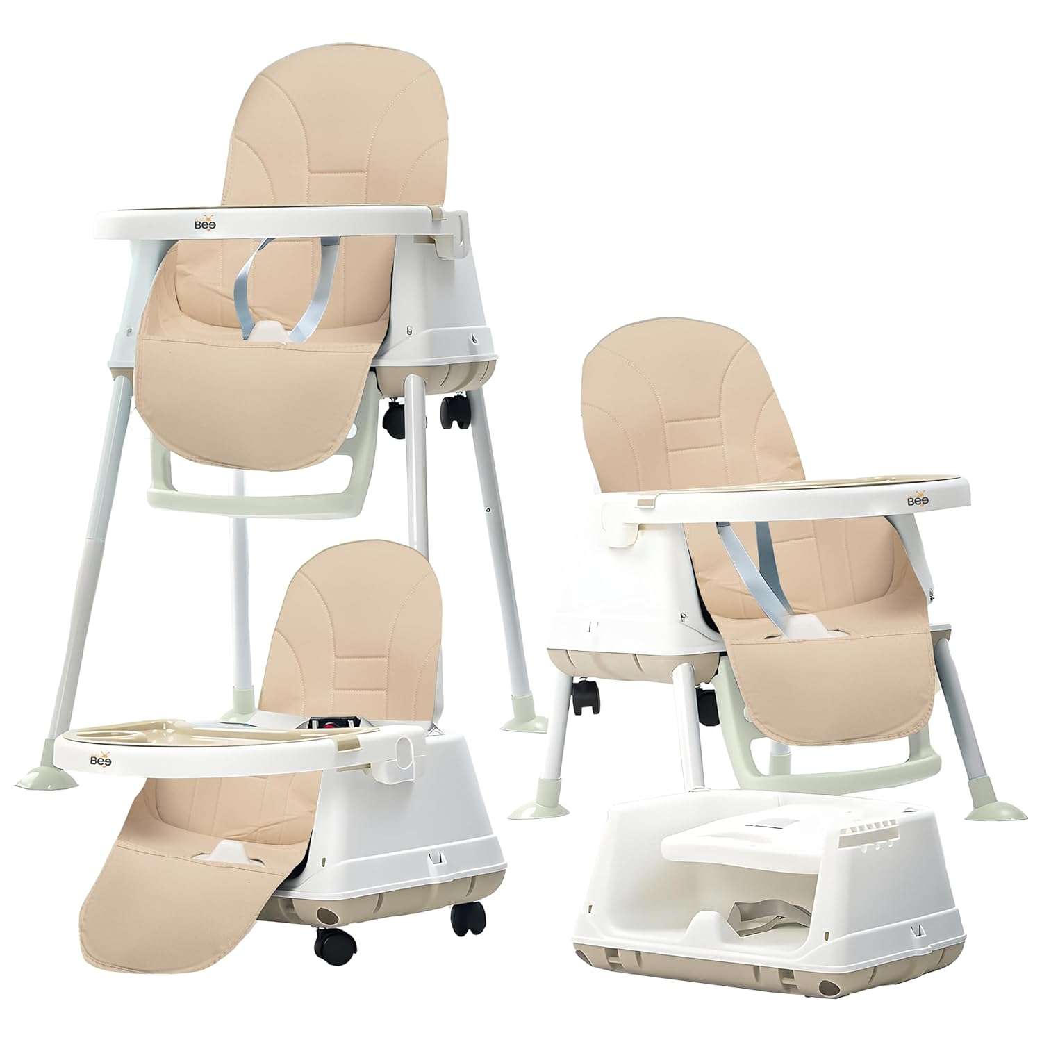 - 4 IN 1 Convertible High Chair: A stylish solution designed to grow with your child – from a Cushion High Chair to a Normal Chair, Booster Seat, and a Chair with Wheels. This adaptability offers prolonged usability as your child grows.