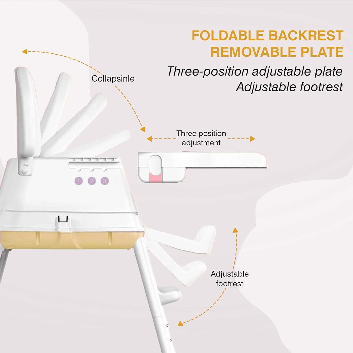 - Grows with Your Baby: The high chair is designed to evolve with your baby’s needs. The removable tray with 3 adjustable positions and height levels offer customizable comfort and adaptability, adapting as your baby grows.