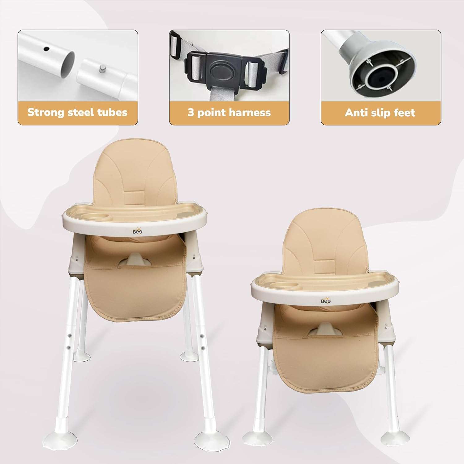 - Sturdy, Stable & Safe: Height-adjustable metal legs equipped with rubber grips ensure exceptional stability and safety. A 3-point safety harness adds an extra layer of protection.