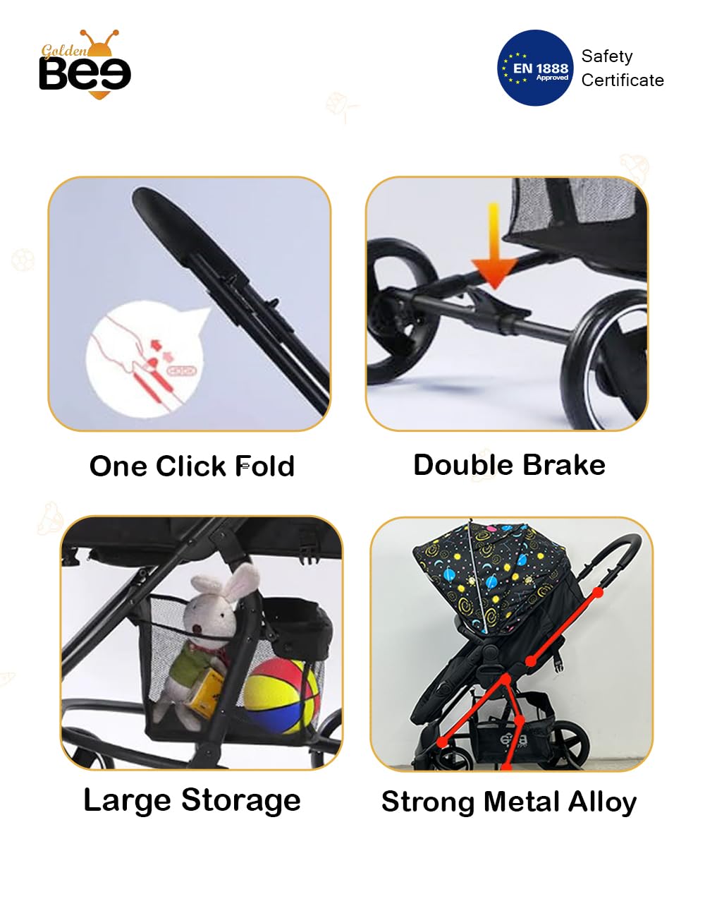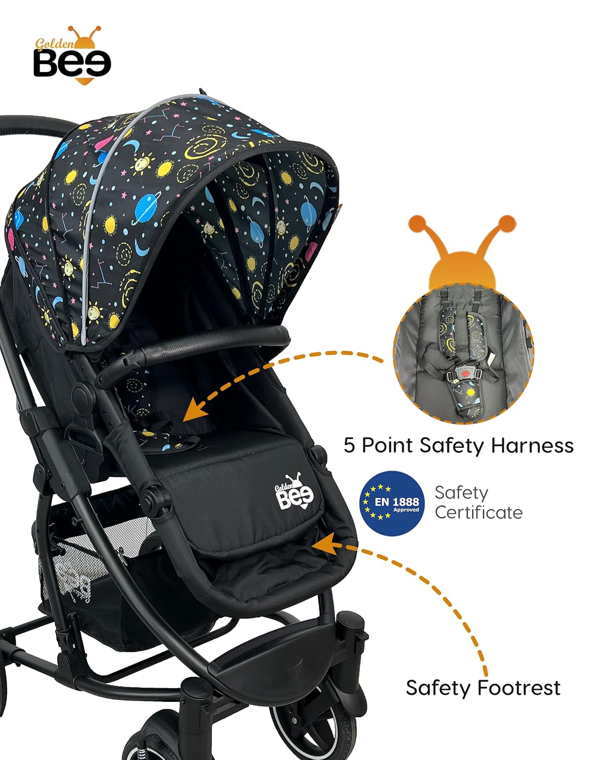 Golden Bee Royal Crown Baby Stroller/Parm, 2 in 1 Transformable Seat, Stroller Cum Carry Cot for Infant, Switchable Sleeping Basket, Adjustable Sunshade, for Boy & Girl Age 0-3 Years (Black Galaxy) Golden Bee Royal Crown Baby Stroller/Parm, 2 in 1 Transformable Seat, Stroller Cum Carry Cot for Infant, Switchable Sleeping Basket, Adjustable Sunshade, for Boy & Girl Age 0-3 Years (Black Galaxy)